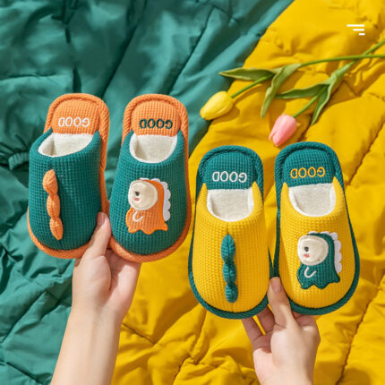 2023 Winter Children’s Cotton Slippers Women’s Home Cartoon Dinosaur Cotton Slippers Winter Parent Child Home Warmth Slippers Cotton