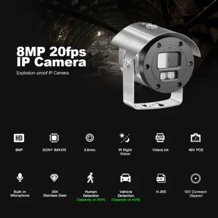 4K 8MP Sony Marine Port Oil Drilling Gas Security Surveillance 304 Explosion-Proof Poe ATEX CCTV IP Camera