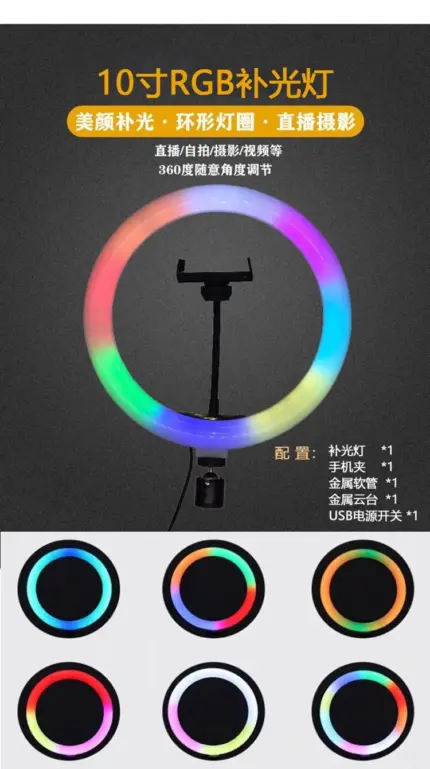 Photographic Lighting LED RGB Selfie Fill Ring Light Video Microphone RGB Selfie Ring Fill Light For10 Inches
