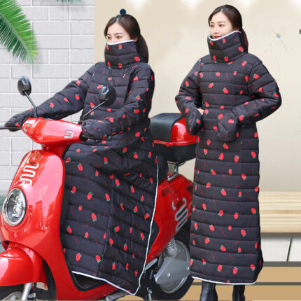 Electric scooter windproof cover with winter plush and thickened small bike cold jacket, waterproof and warm motorcycle windproof cover