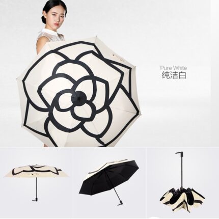 Camellia fully automatic and minimalist Korean women’s forest series sun protection and UV protection umbrella, three fold sun umbrella, dual-purpose