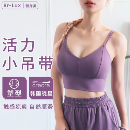BR fixed cup shock-absorbing gathered fitness vest with women’s edging shoulder strap sports bra integrated beauty back yoga bra