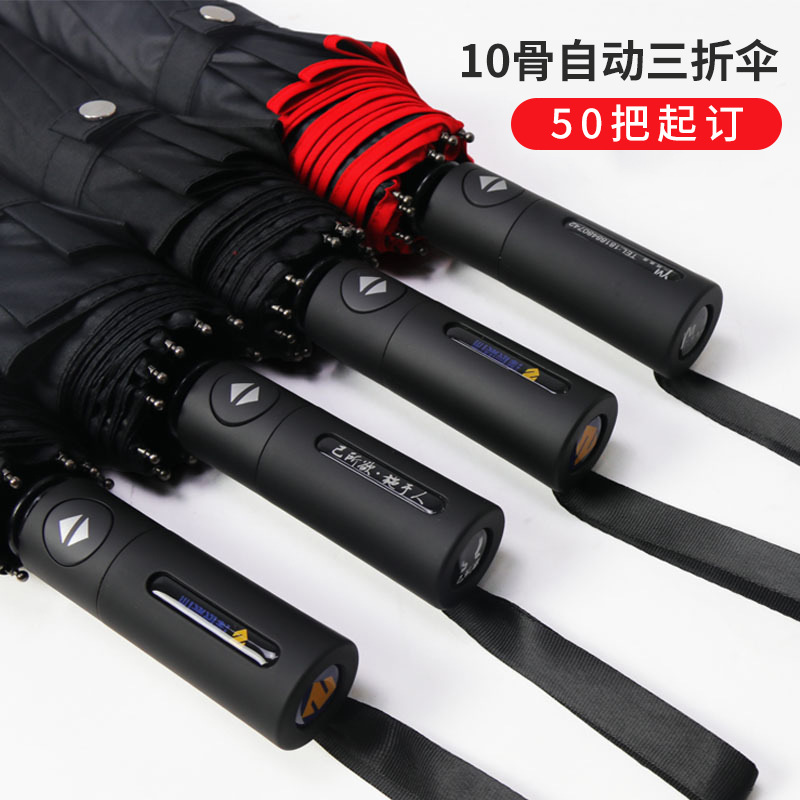 10 bone black fully automatic edging three fold clear umbrella, solid color car logo gift, black glue advertising umbrella, pirate king umbrella