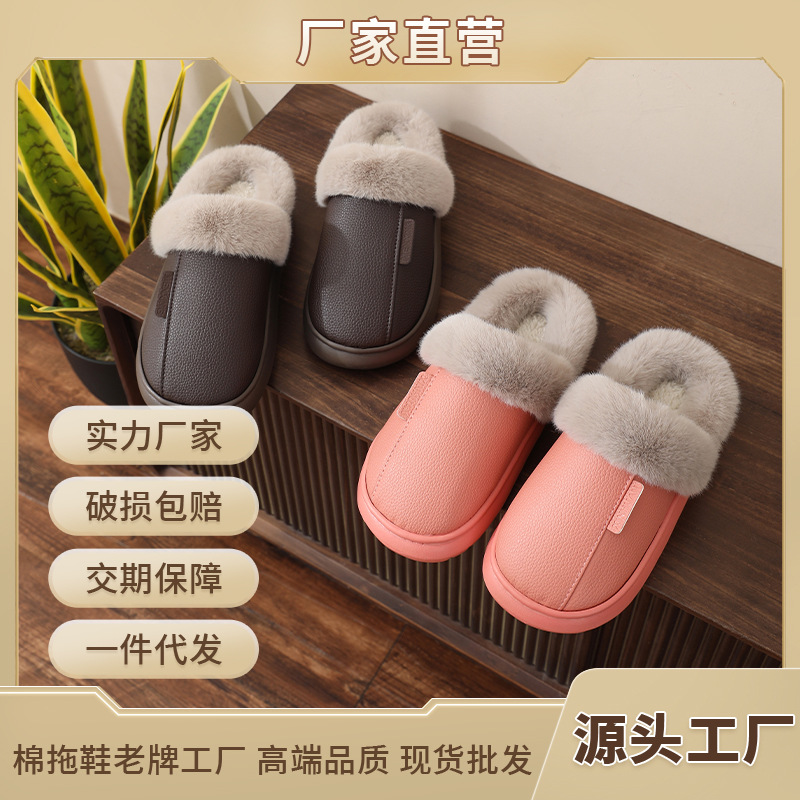 2023 Autumn and Winter Plush Warm and Waterproof Rabbit Hair Home EVA Slippers Wholesale of Women and Men’s Cotton Shoes, One Piece for Delivery