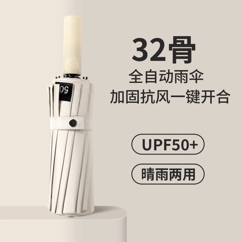 32 bone large fully automatic umbrella for both sunny and rainy use, reinforced and foldable, wind resistant, male sunshade, sun protection, and UV protection
