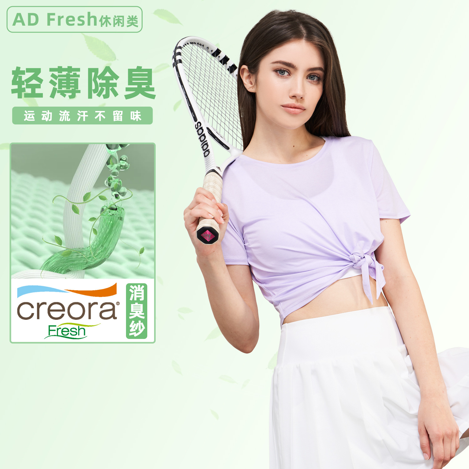 ADF Light and Thin Deodorizing Yoga T-shirt for Women’s Summer Loose and Breathable Round Neck Casual Cover Up Split Tie Short Sleeve Top