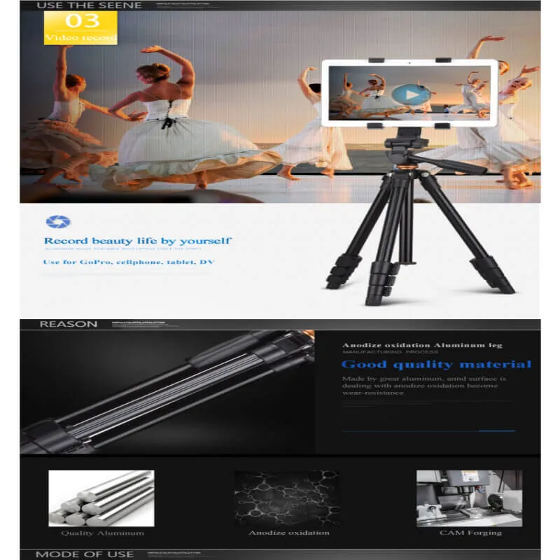 Aluminum Portable Phone Tripod with Pan Head for DSLR – Promotion Gift