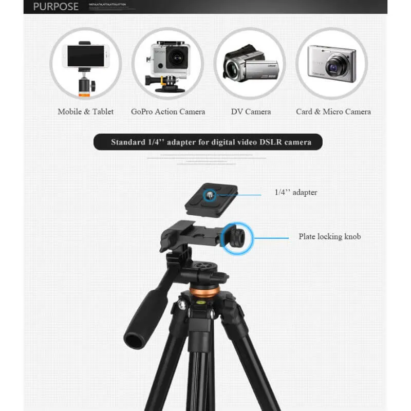 | Tripods Use | Digital Camera, Video Camera, Smartphone | Tripods Material | Aluminum |