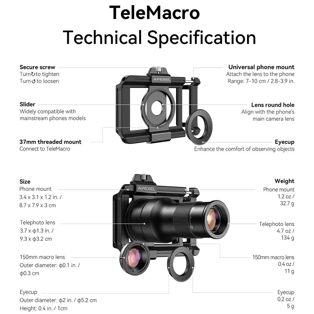 Apexel Apl-TM6 2 in 1 Telephoto Macro Lens Observation 6X Telescope Lens for Smartphones