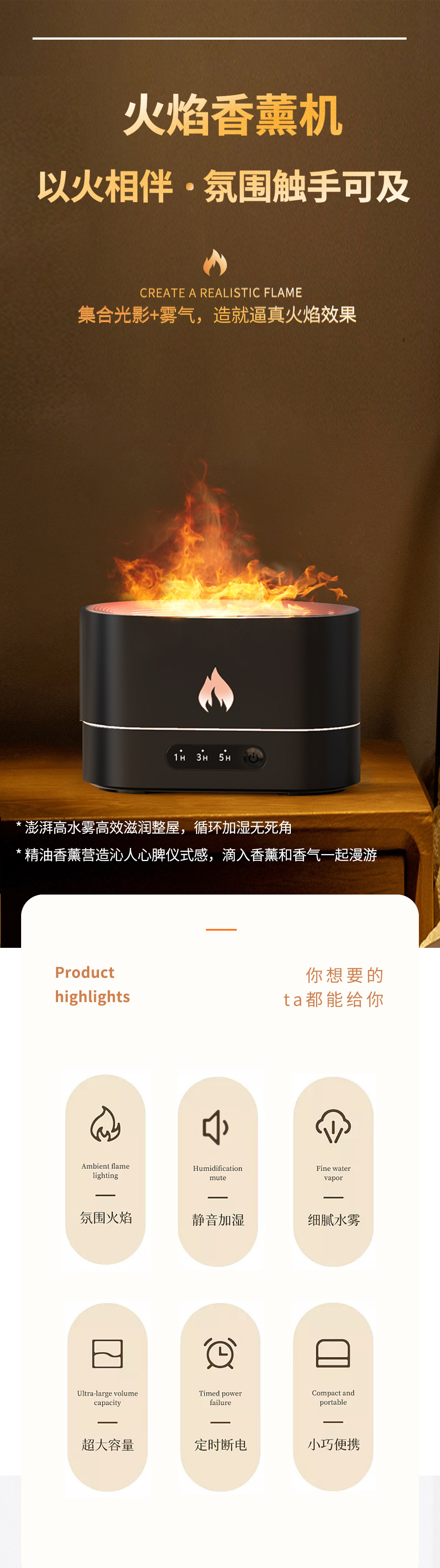 Aromatherapy machine desktop USB night light simulation atomizer flame humidifier flame aromatherapy machine