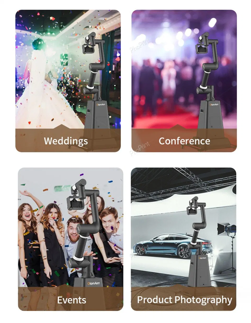 Automated Spin Glambot Robotic Arm 6 Axis Camera Party Photo Booth Glambot Robot