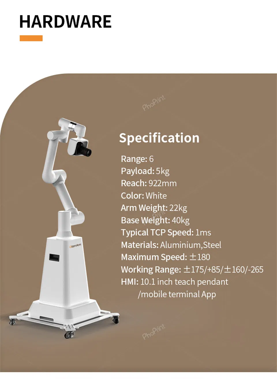 | Quantity | 6 Axis Robotic Arm Control | Payload | 5kg |