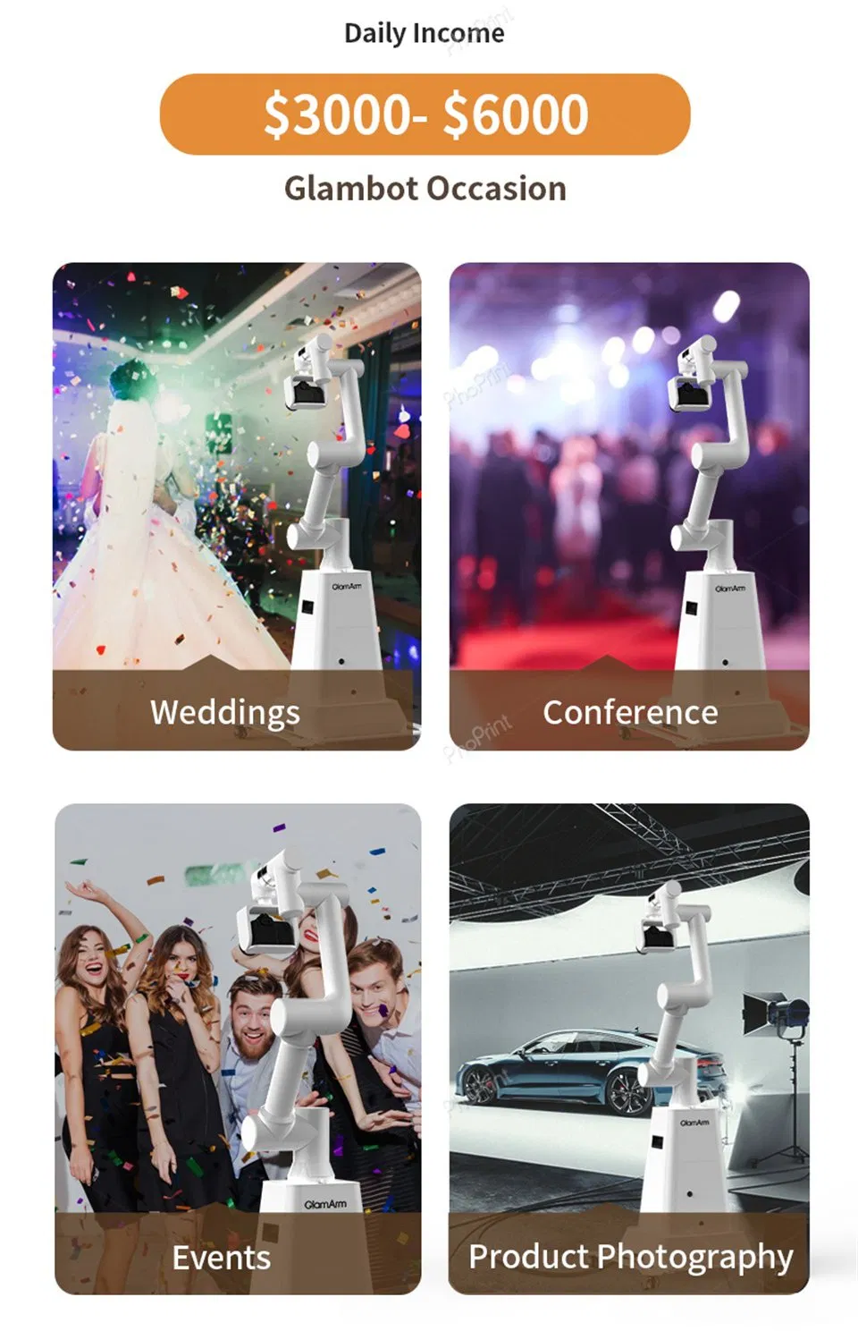 Automatic Magic Glambot Robotic 6aix Arm Camera 360 Robot Photo Booth Glambot Machine for Party Wedding