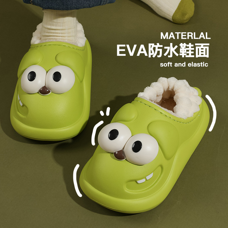 Big eyed dog cotton slippers waterproof women’s indoor thick sole anti slip bag and winter home EVA slippers for women’s winter