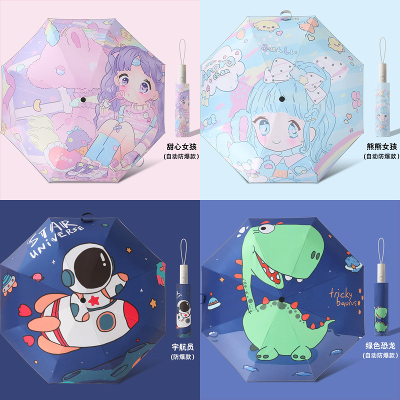 Cartoon Convenient and Fully Automatic Anti rebound Children’s Umbrella Folding Black Adhesive Reflective Strips Primary School Children’s Umbrella