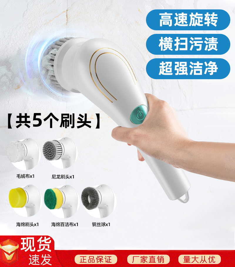 Cross border 5-head replaceable powerful electric cleaning brush, multifunctional household dishwashing brush, kitchen handheld cleaning tool