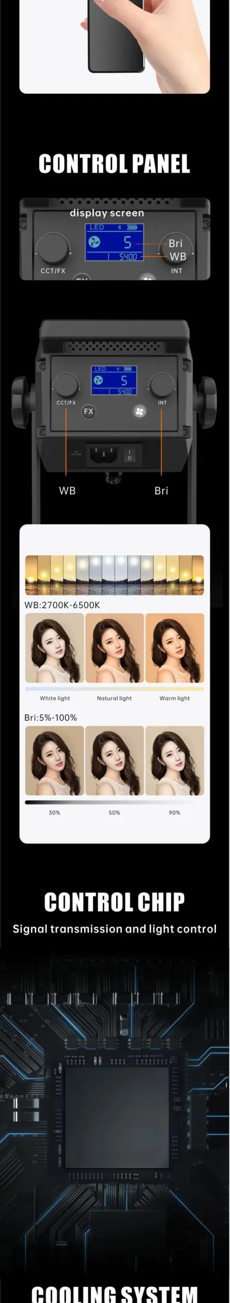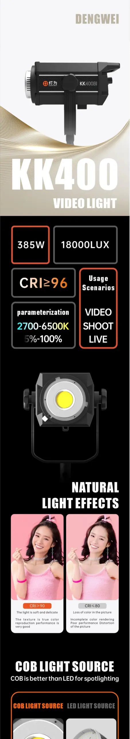 Dengwei 220W Adjustable COB LED Lights for Filmmaking