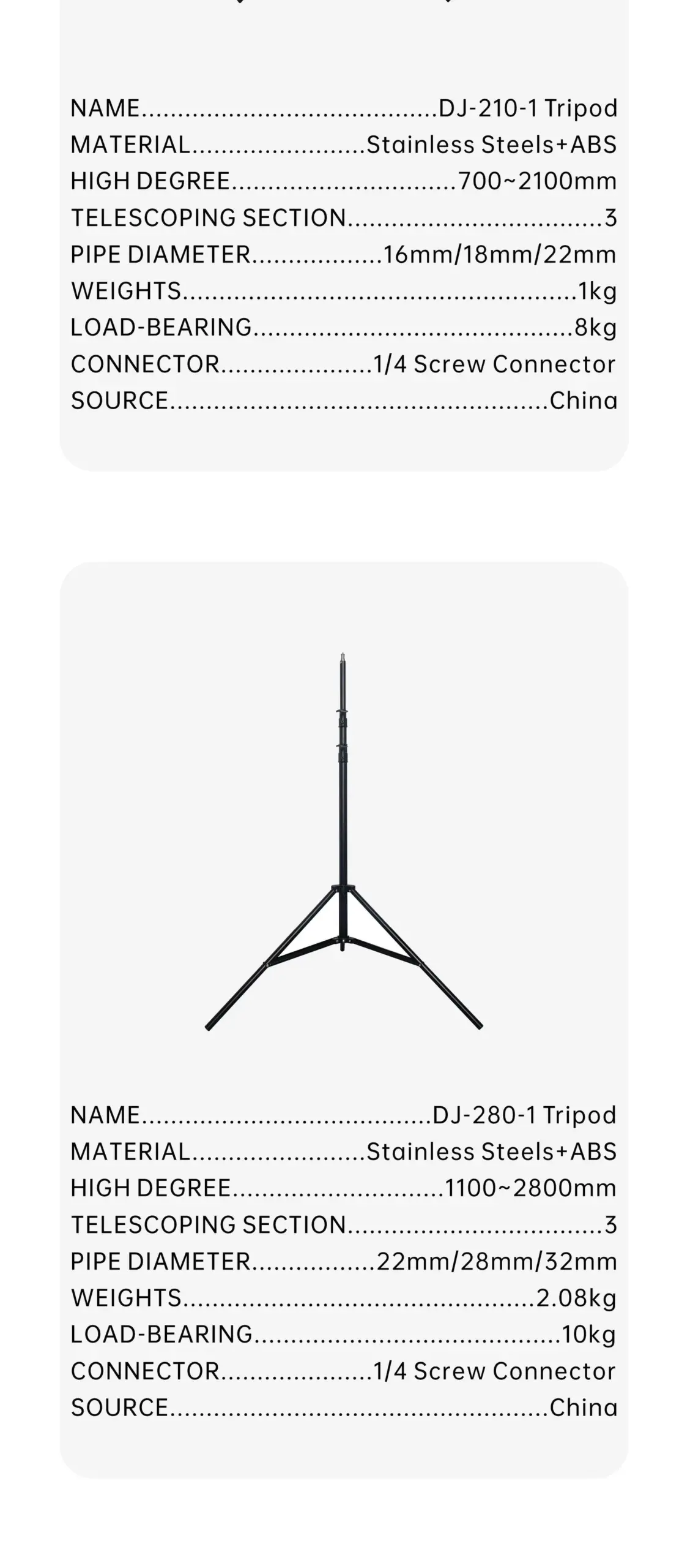 | Expansion Height | 80-260cm Telescopic | Interface | 1/4 Screw Port |