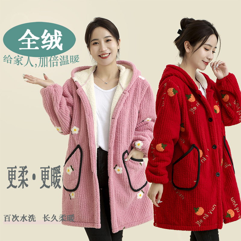 Down jacket, cover up for adult women, winter millet plush and thickened jacket, household chores, kitchen work clothes, long sleeved apron