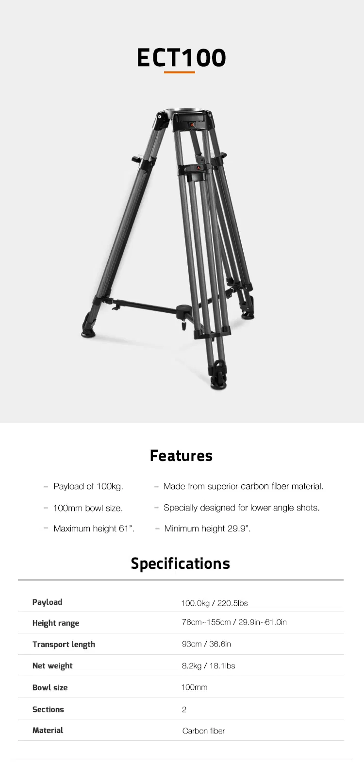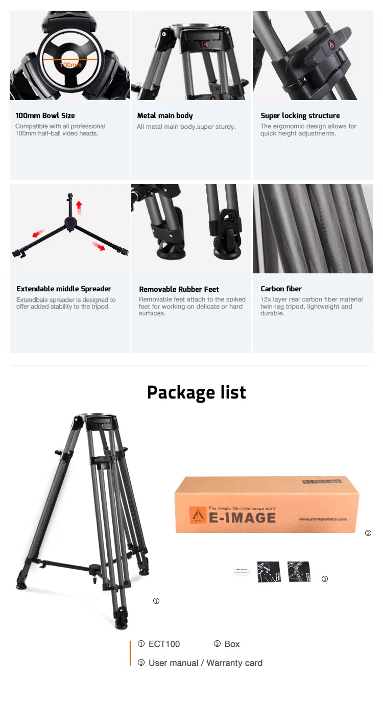 E-Image 100mm Bowl Stronger Carbon Fiber Heavy Duty Tripod (ECT100)