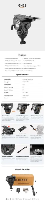 Be the first to review “E-Image Professional 100mm Bowl 28kg Payload Heavy Duty Tripod Fluid Head (GH25)” Cancel reply