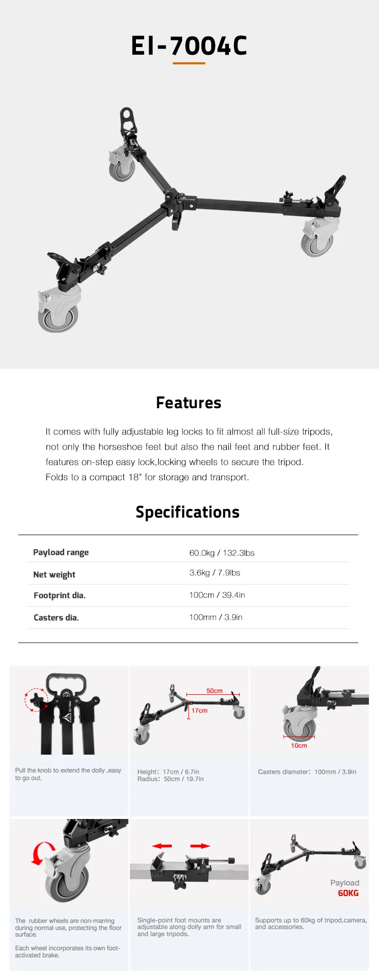 | Model NO. | EI7004C | Type | Tripod Dolly |