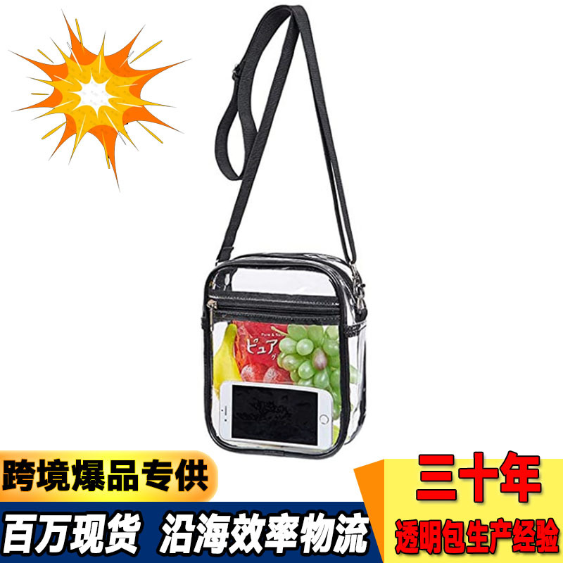 European and American PVC transparent bag, single shoulder crossbody file bag, portable waterproof beach, multifunctional travel storage pocket, change money