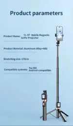 Be the first to review “Foldable Selfie Stick Tripod Mobile Magnetic Selfie Projection Bt Remote Control Universal Phone Vlog Rear Camera Screen” Cancel reply