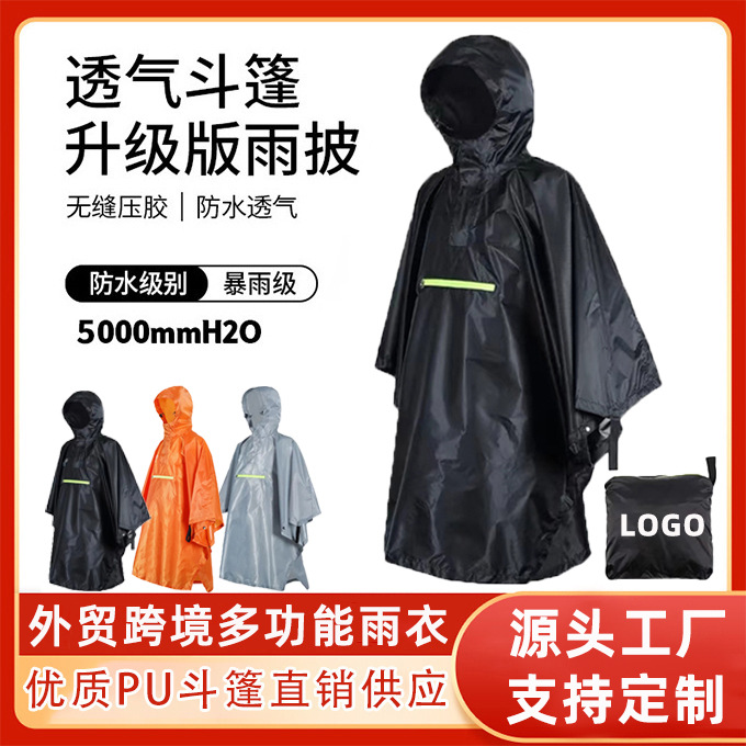 Foreign trade cape style raincoat, cross-border multifunctional three in one raincoat, outdoor mountaineering polyester PU canopy raincoat manufacturer