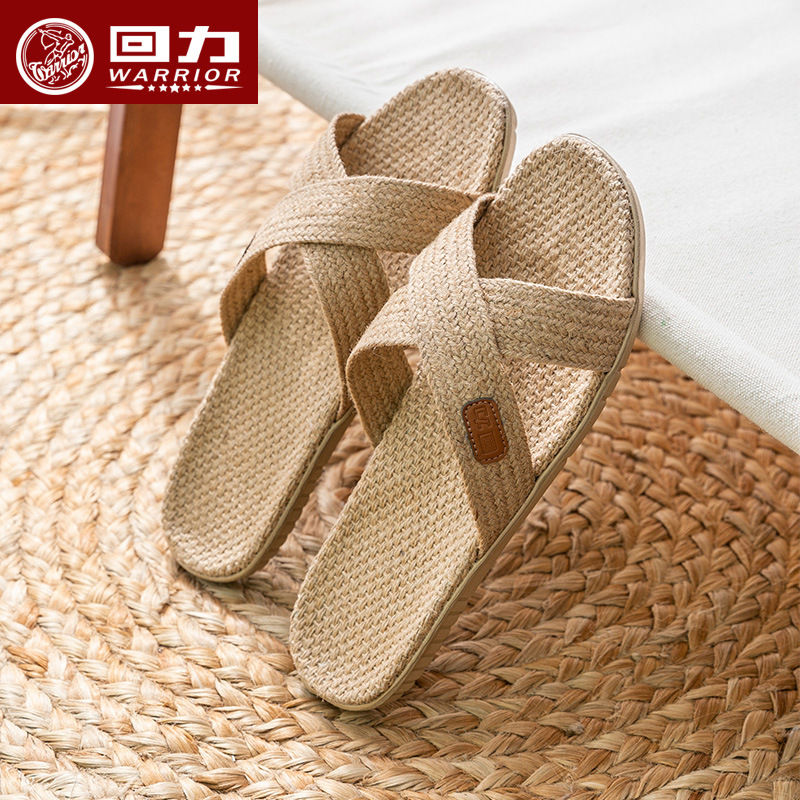 Four Seasons Men’s Indoor Spring and Autumn Home Sweat-absorbing, Silent and Anti slip Cotton and Linen Women’s Summer Home Cool Slippers
