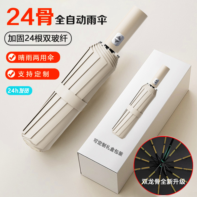 Fully automatic twelve bone double bone reinforced umbrella with three fold black glue anti UV sunshade umbrella for both sunny and rainy use