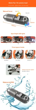 | Camera Head | Diameter 50mm | Name | Pan and Tilt Sewer Pipe Inspection Camera |