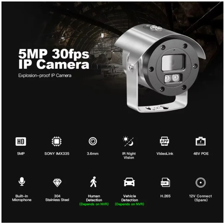 Hicotek 5MP 4K 304 Stainless Steel Infrared Industrial CCTV Poe Explosion Proof IP Camera Marine Gas Station Oil Mine Use