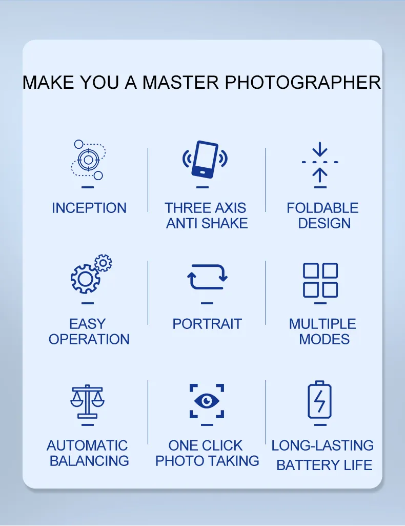 | Feature | 360 All-Round Stability Shooting | Function | Stabilize Adjust Camera Shooting Directions |