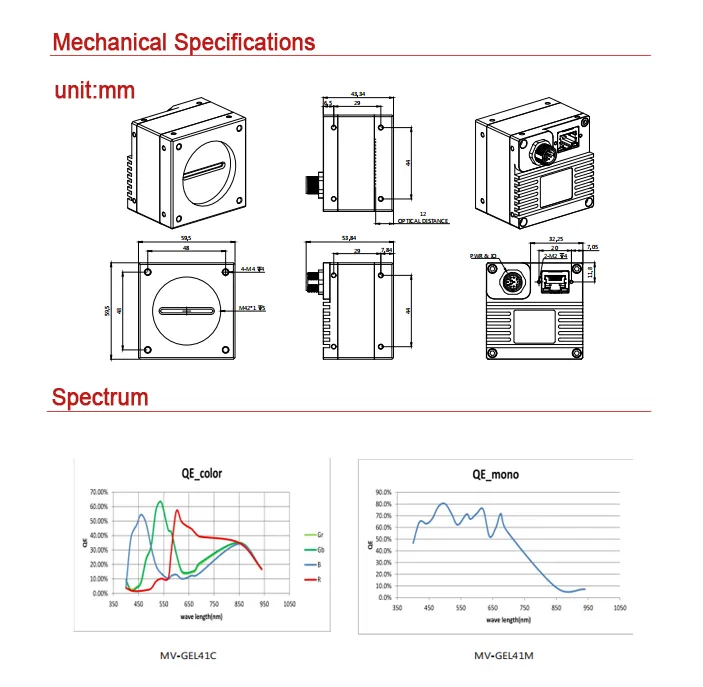 | Model NO. | MV-GEL41C/M | Lens | Fixed Focal Length Lens |