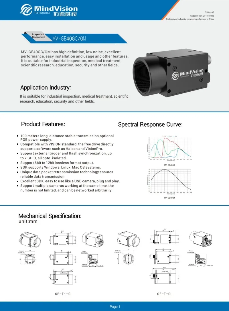 | Model NO. | MV-GE40GC/M | Dynamic Range | 60dB |