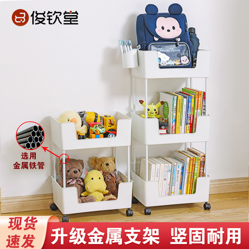 Junqintang movable bookshelf, multi-layer storage rack, book storage tool, small cart, storage, reading wheeled bookshelf