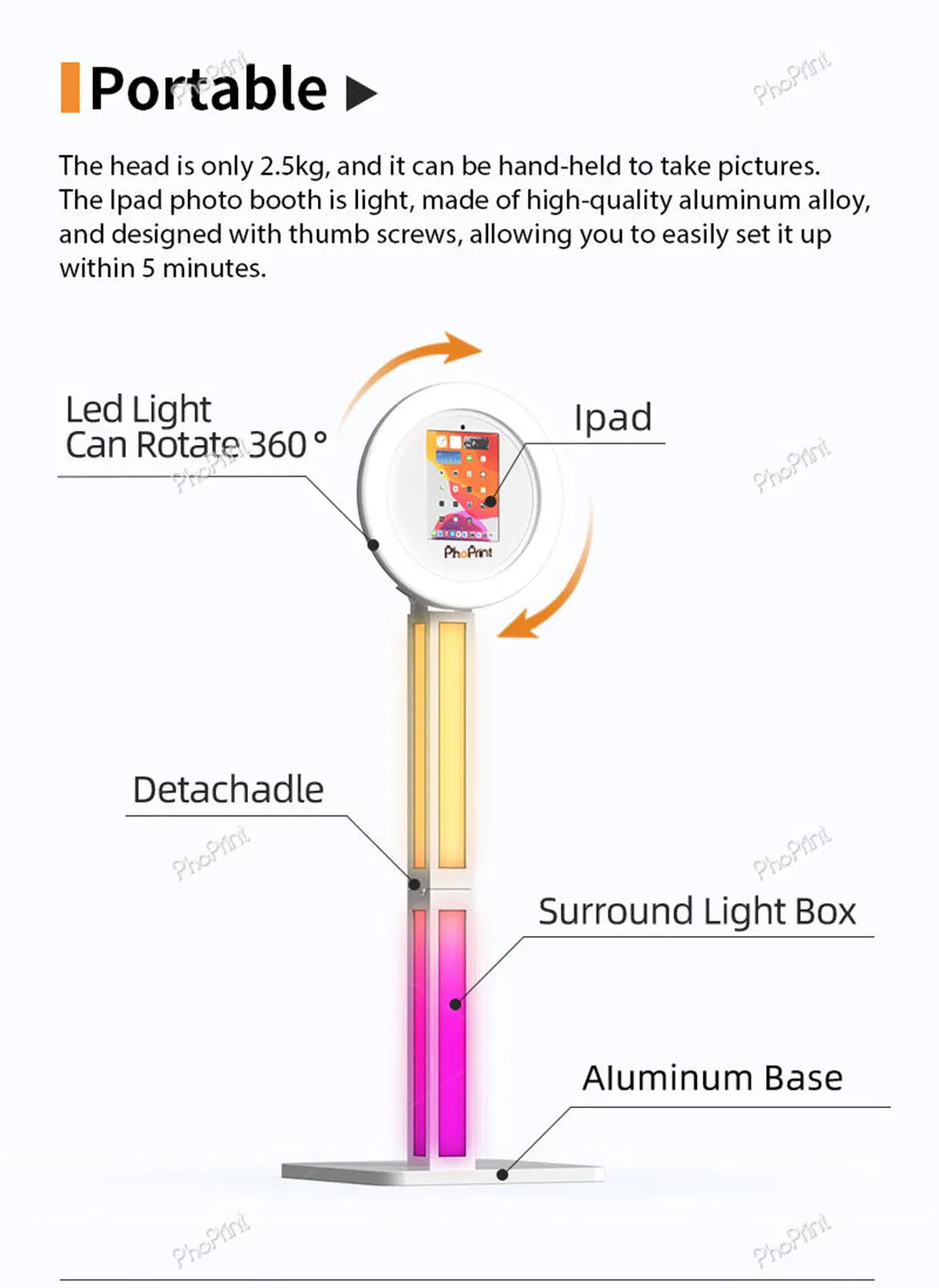LED Light Social Kiosk Roaming Magic Mirror Selfie Kiosk Portable iPad LCD Digital Photo Booth