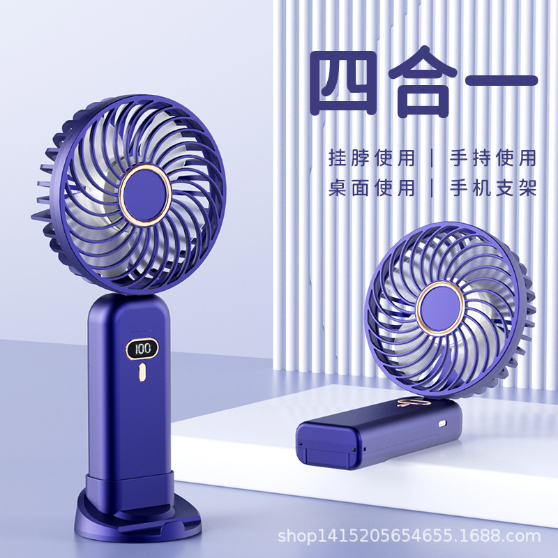 Mini Silent Folding Portable Handheld Small Fan Hanging Neck Digital Display Desktop Fan USB Charging Logo