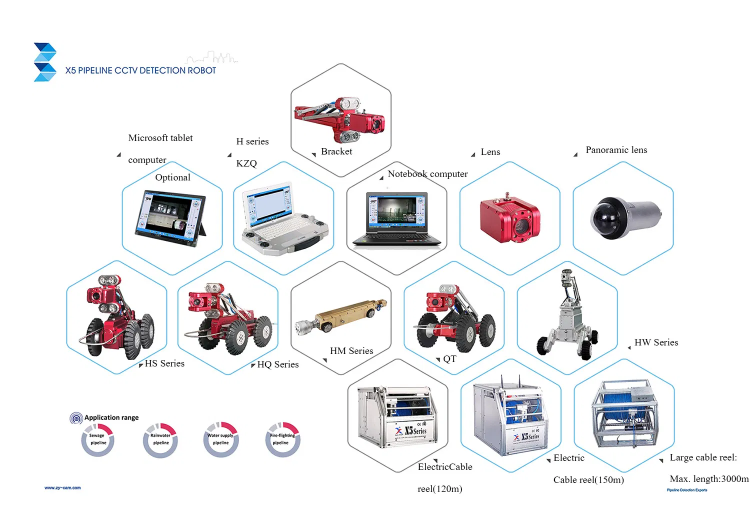 | Pipeline Diameter | 250-650mm | Camera Lens Angle | Pan/Tilt |