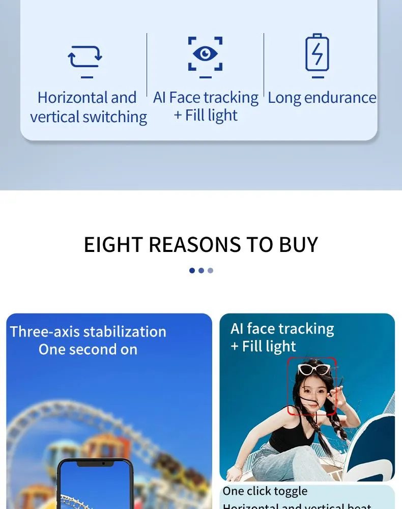 | Support | Mobile Portrait & Landscape | Style | High Quality Gimbal |