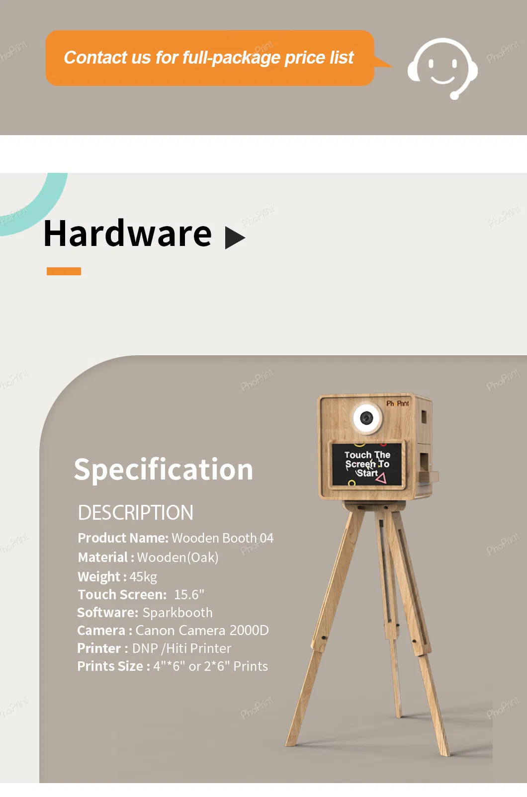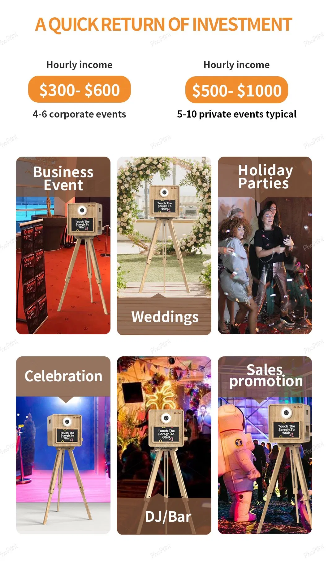 New Photo Booth Selfie Mirror Wedding Party Event Wooden DSLR Photo Booth with Camera and Printer