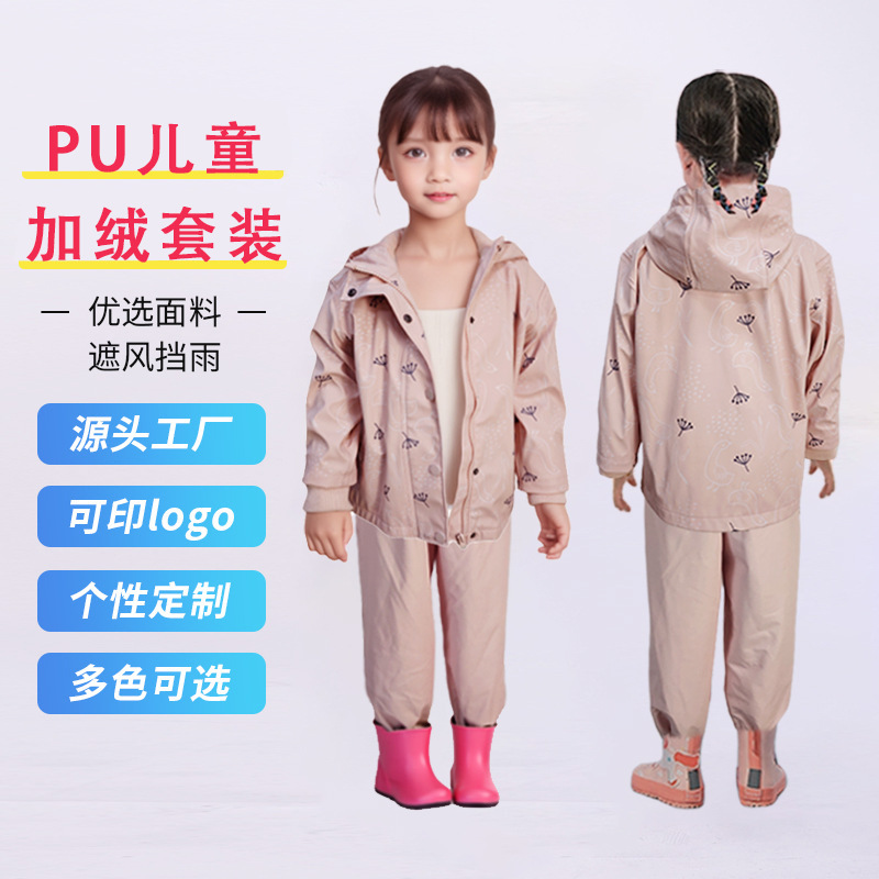 Pink water splashed female children’s thickened raincoat, children’s silk screen raincoat set, children’s PU raincoat set, waterproof