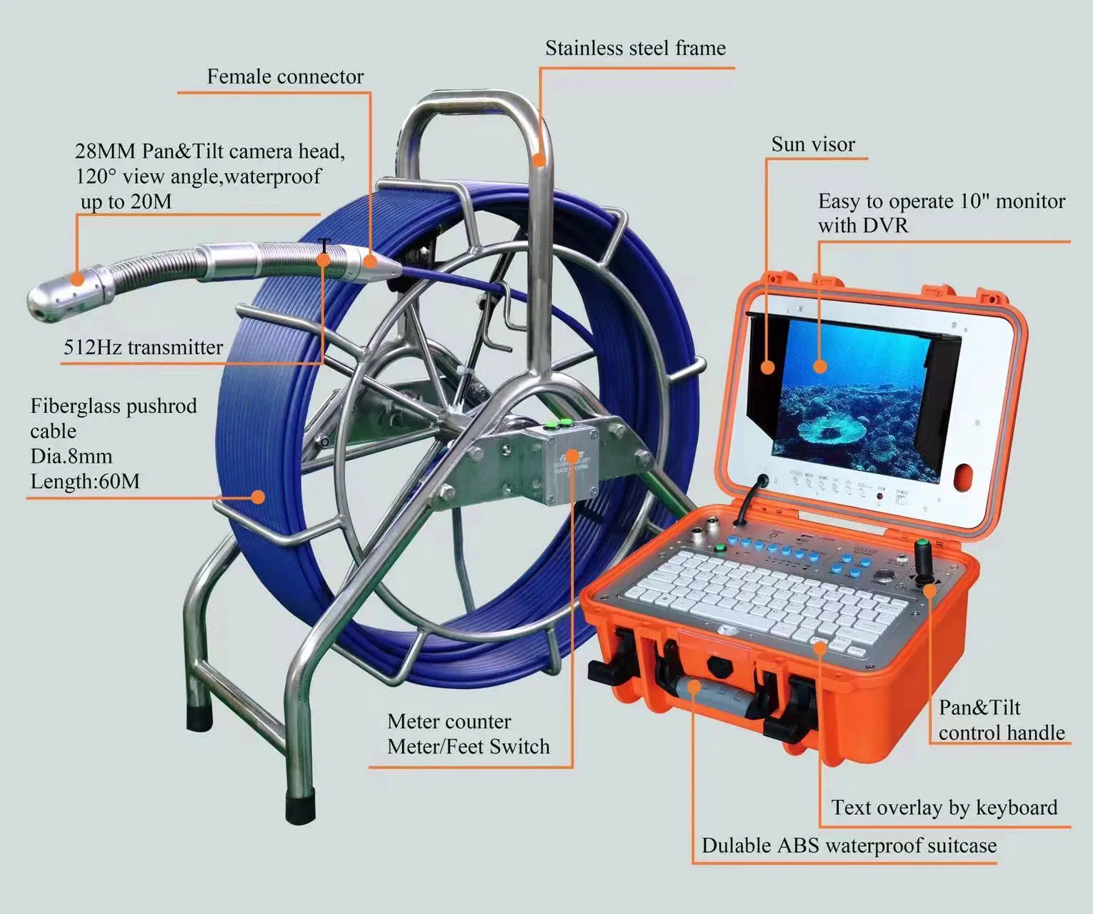 Pipe Inspection Video Camera with 28mm Pan Tilt Lens, 30m Working Cable