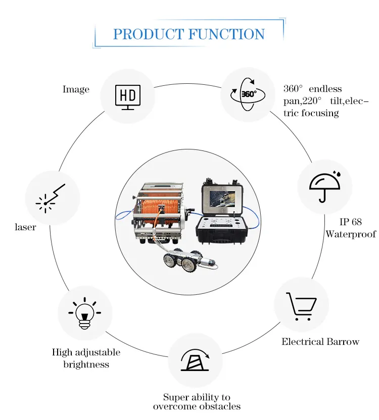 | Rotate Feaure | 360° Endless Pan, 220°tilt | Name | Underground Sewer Drain Sewage Pipe Line Inspectio |