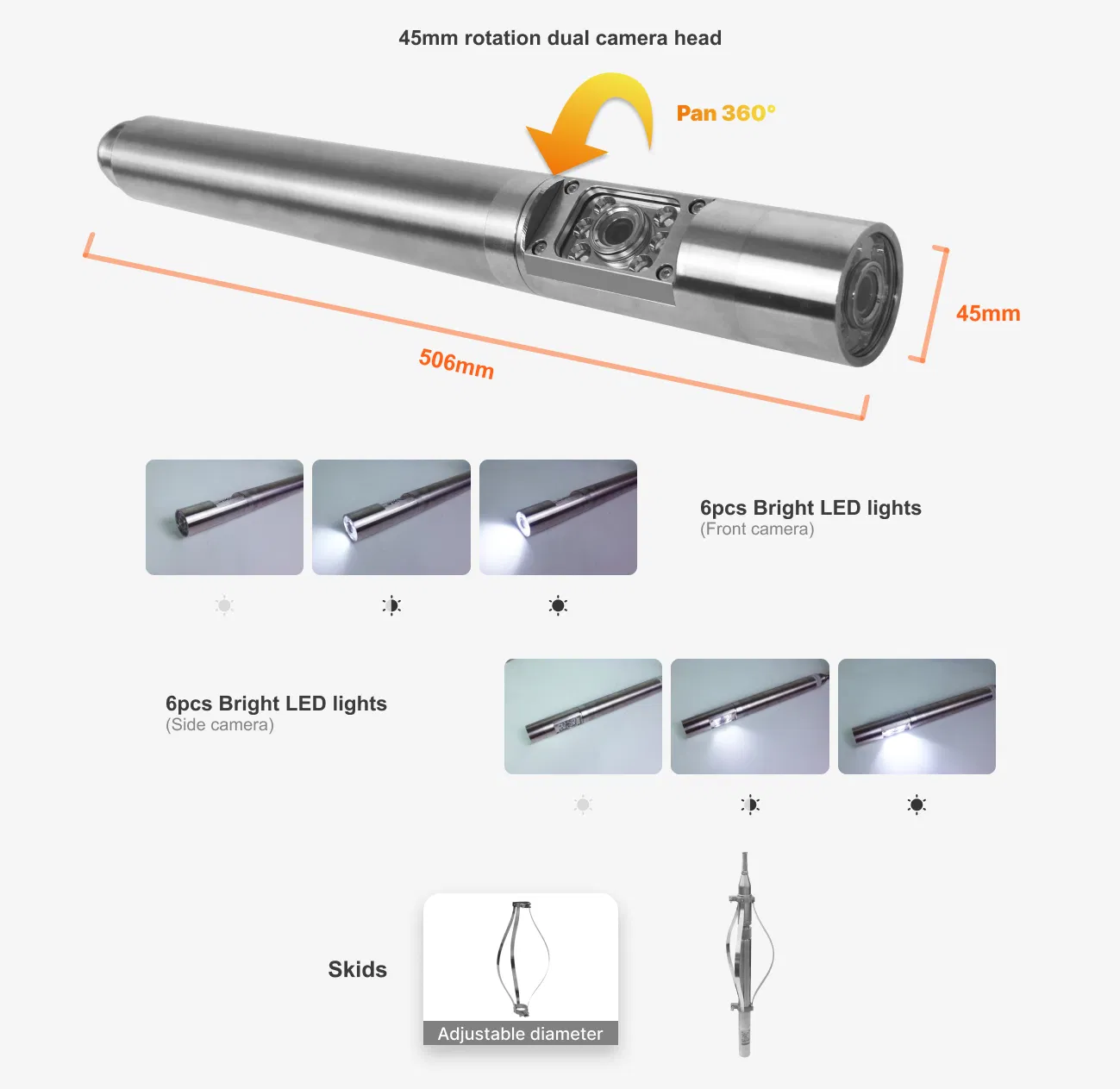 Portable 200m Electrical Winch Borehole Camera Waterproof 500m Deep Well Camera