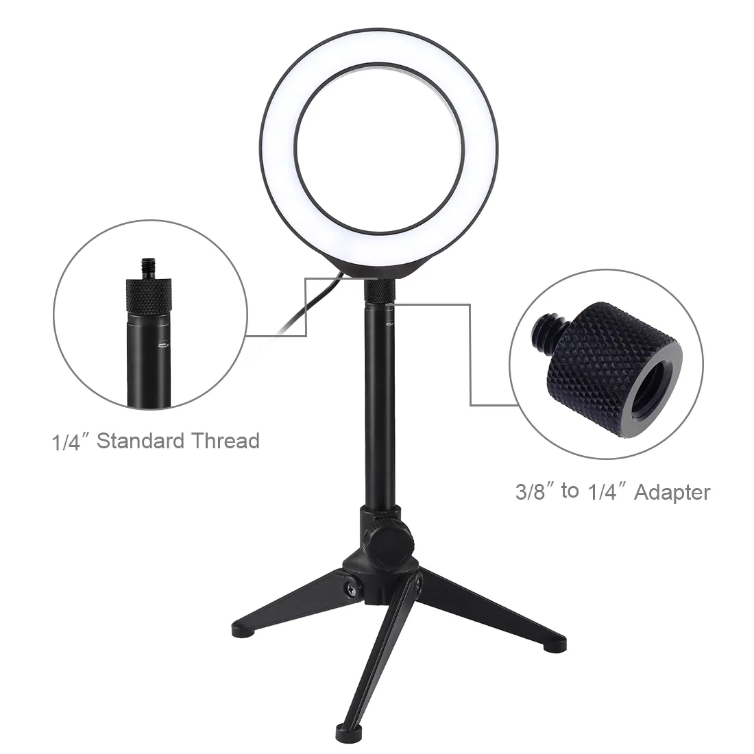 Puluz 4.7-Inch 12cm Ring Light + Desktop Tripod Selfie Stick Mount USB White Light LED Ring Vlogging Photography Video Lights Kits