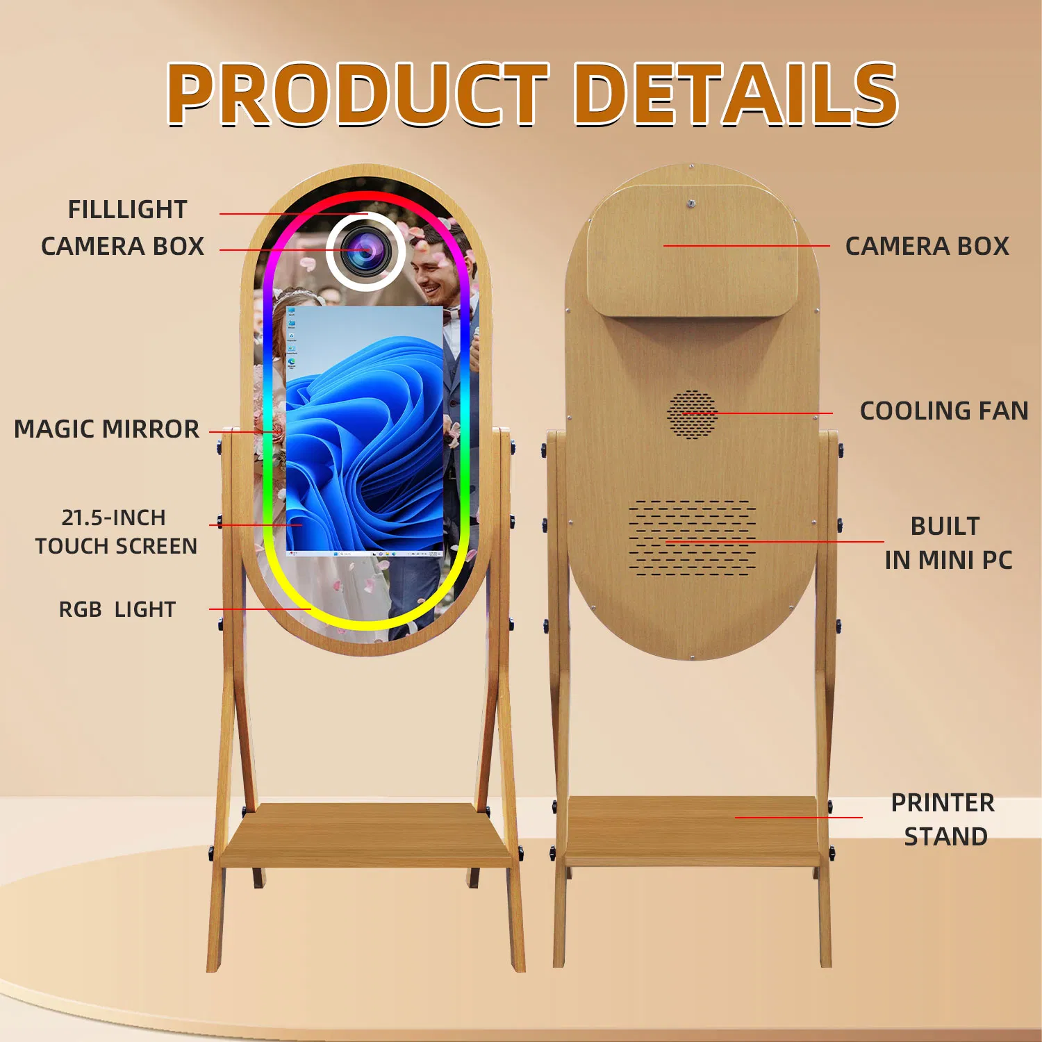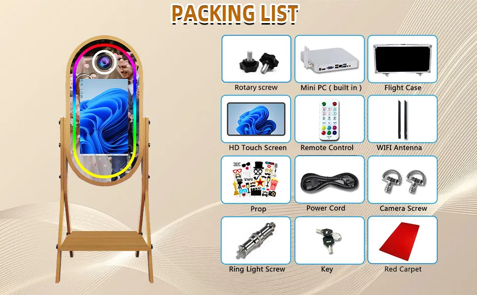 | Specification | 109*30*67cm | Mirror Photo Booth | [’21inch Screen’] |
