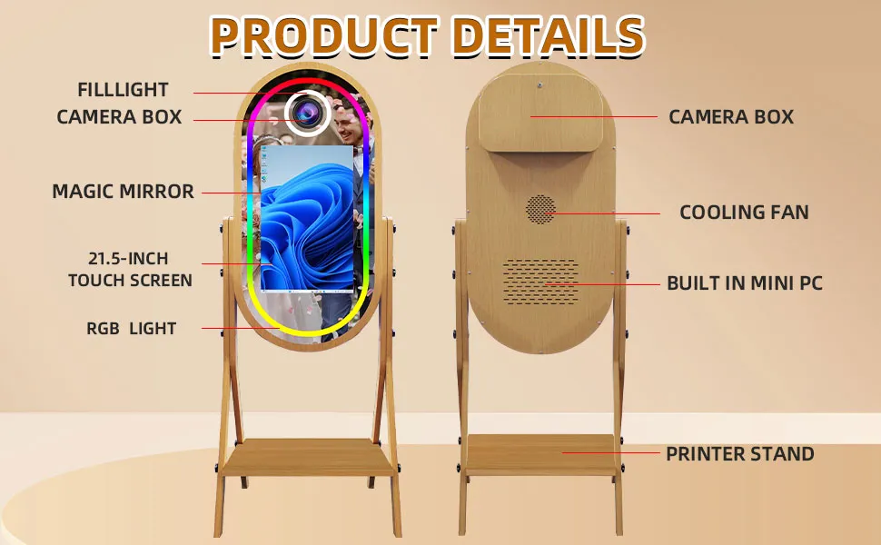 Be the first to review “Retro Wood Grain Photobooth with Printer Tray Selfie Mirror Photo Booth Machine” Cancel reply