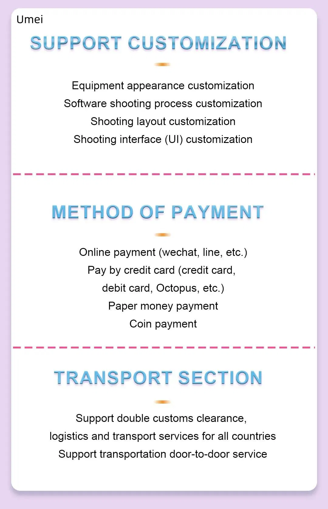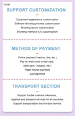 | Model NO. | UM20 | Type | Photo Booth Vending Machine |